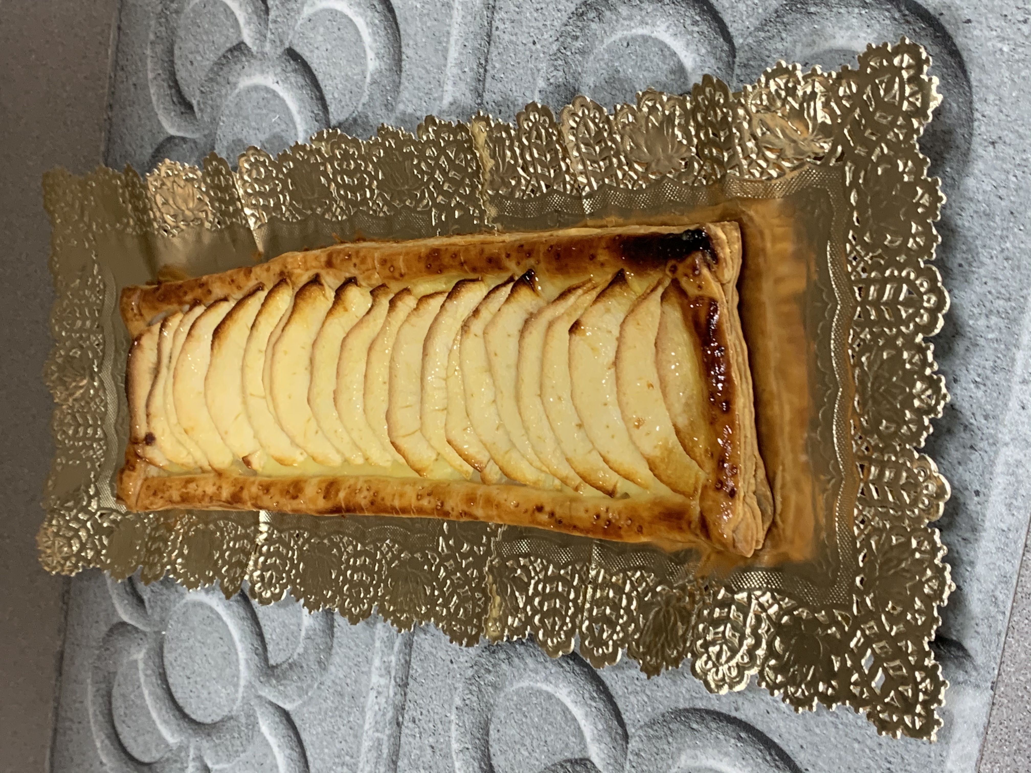 Esta tarta de manzana de hojaldre, crema y manzana es la que hacíamos en la pastelería de mis padres. No tiene ningún secreto un buen hojaldre, que lo podéis hacer con la receta de cookidoo o comprar una placa refrigerada. Y también una crema pastelera de cookidoo tanto en TM5 como TM6 con la función espesar. En Ultimo lugar hacer que el hojadre este lo suficiente crujiente. Es un clásico que nadie puede resistirse.