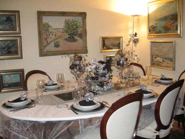 Decoración mesa navidad en color plata y negro