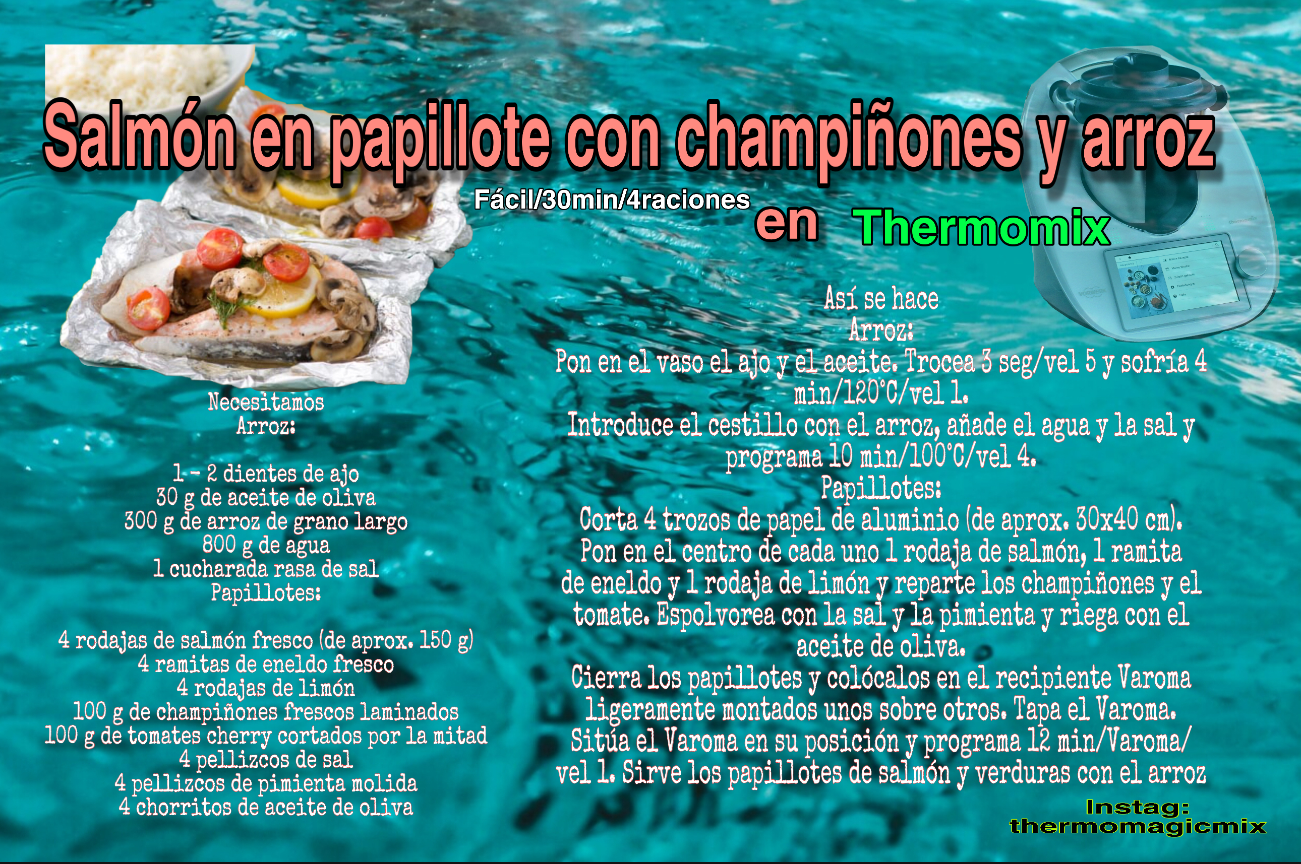 SALMÓN EN PAPILLOTE CON CHAMPIÑONES Y ARROZ EN THERMOMIX