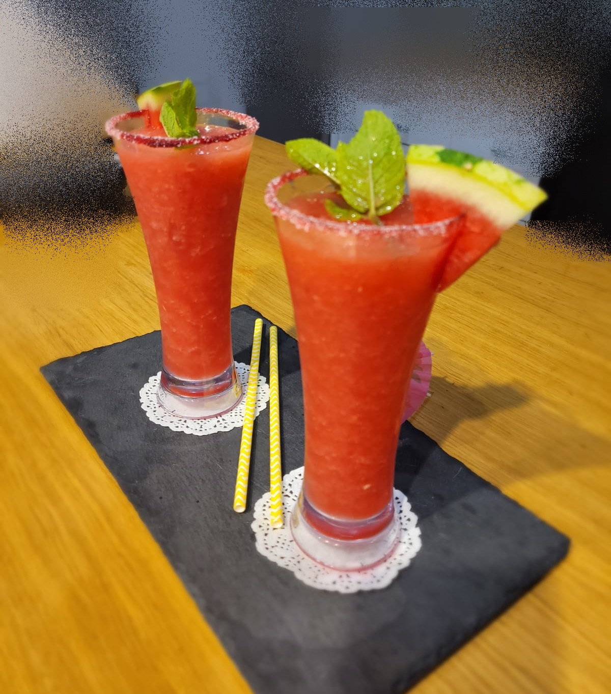 Convierte este mismo granizado en un refresco de sandía si al acabar pones un chorro de agua con gas a cada vaso. Encuentra este refresco en Cookidoo®️.