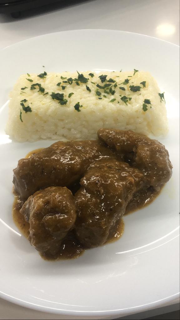 Carrilleras acompañadas de arroz blanco