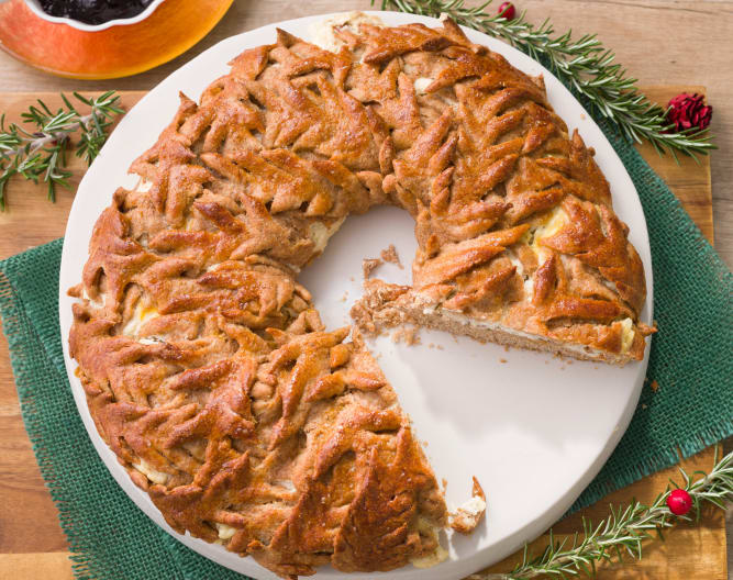 Corona trenzada de espelta con queso, romero, tomates secos y Thermomix