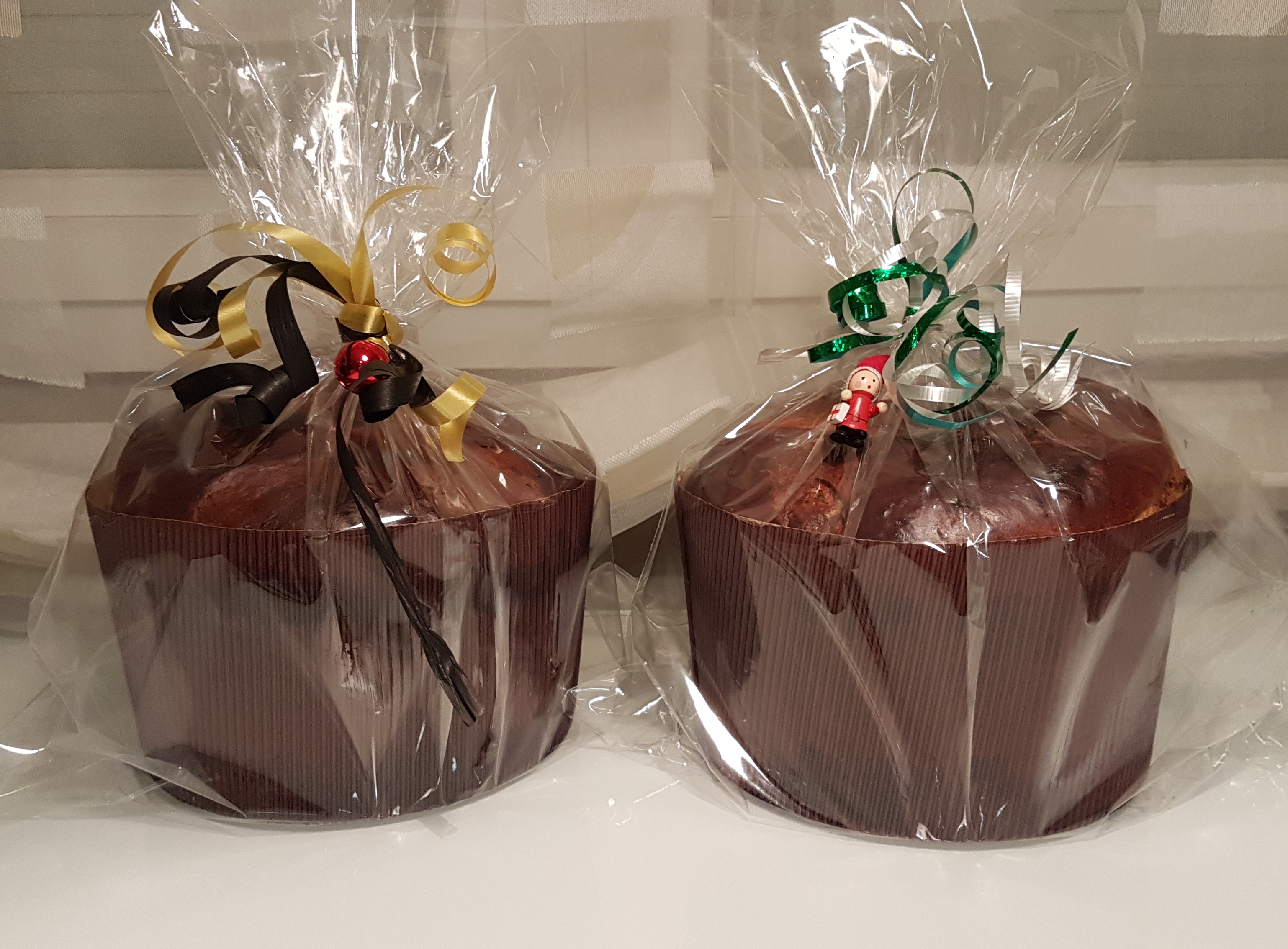 A mi personalmente, me resultó sorprendente hacer dos panettones. Pensaba que era muy complicado y resultó que es fácil. Lo único a tener en cuenta es encontrar el molde de papel para un panettone grande y colgarlo boca abajo mientras se enfría. Yo utilicé dos agujas de hacer media de mi madre.